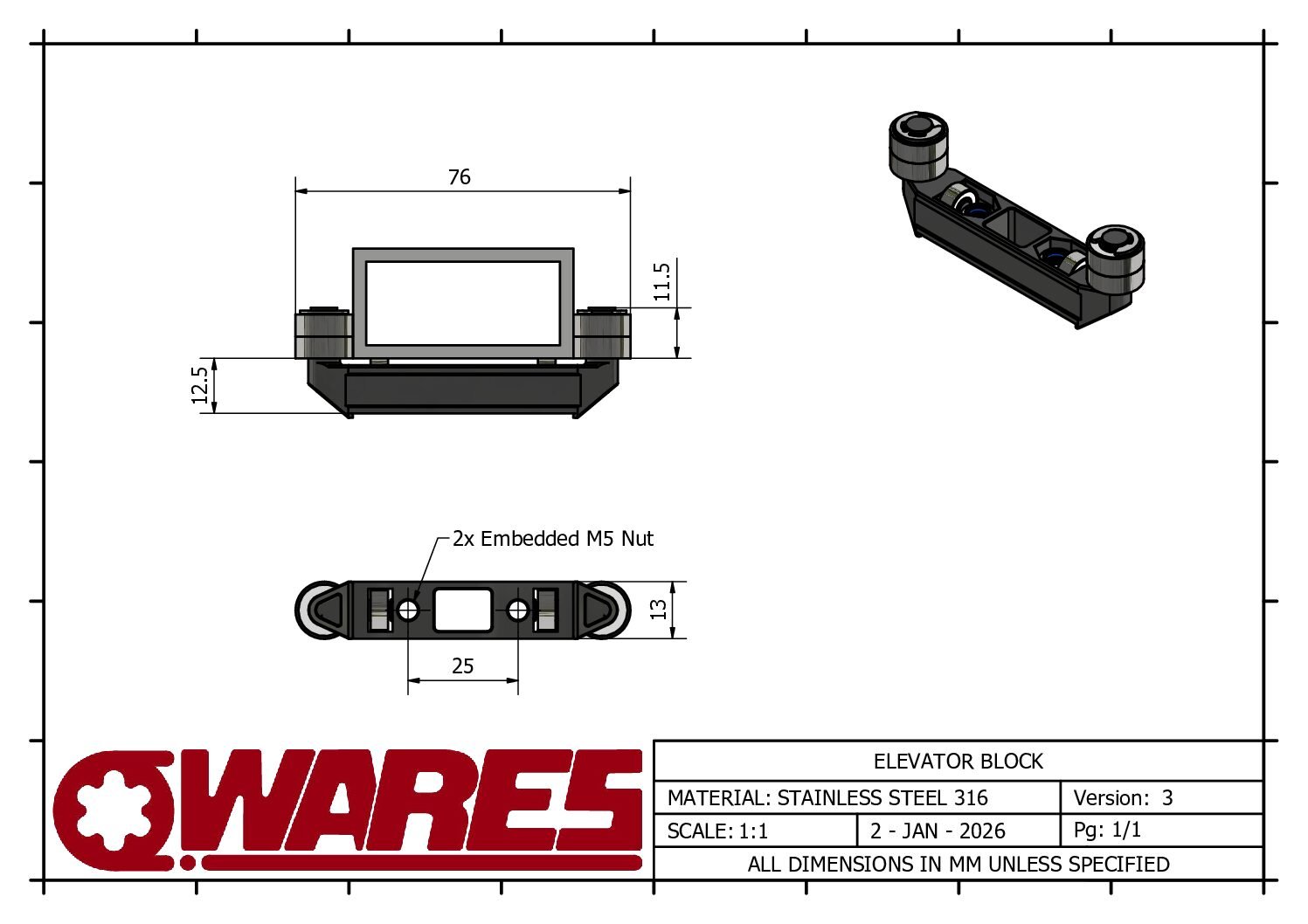 This simple and convenient motion component allows for a consistent linear mechanisms made from 50mm x 25mm rectangular hollow section (RHS).