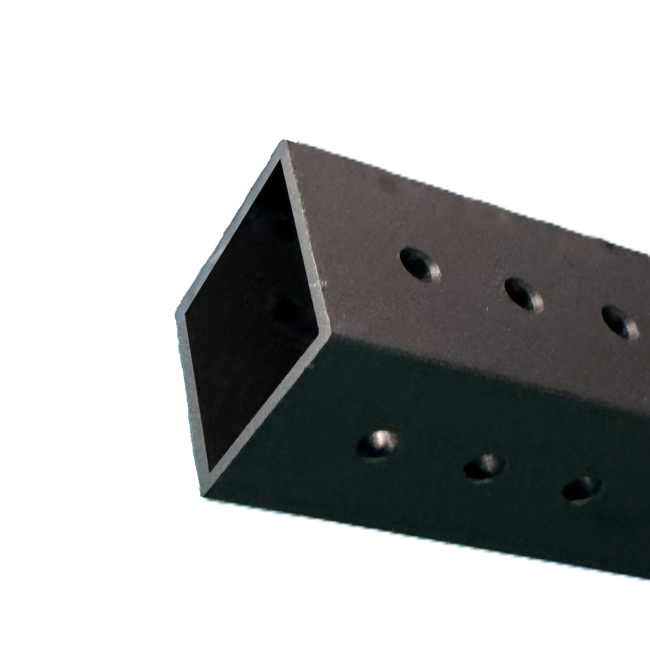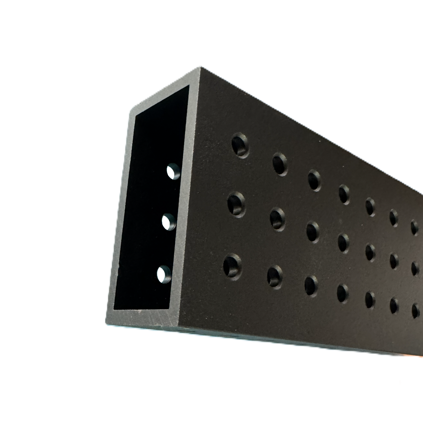 1 meter lengths of 25x50mm and 25x25mm aluminium tube with a precise and convenient hole pattern already machined on the faces.